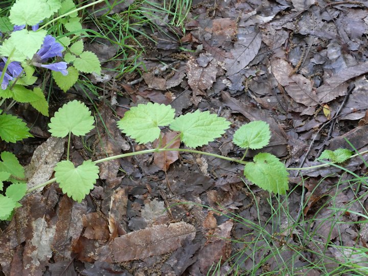 「ラショウモンカズラ」は本州から九州にかけて分布するシソ目シソ科ラショウモンカズラ属の多年草です。山地の湿った場所や渓流沿いなどに自生し,4月から6月にかけて紫色の花を咲かせます。 名前の由来は,その花を渡辺綱が羅生門で切り落としたとされる貴女の腕に見立てたといわれています。ちなみに「カズラ」とはつる性植物のことで,花が咲いた後,茎が地上近くを這って伸びていきます。