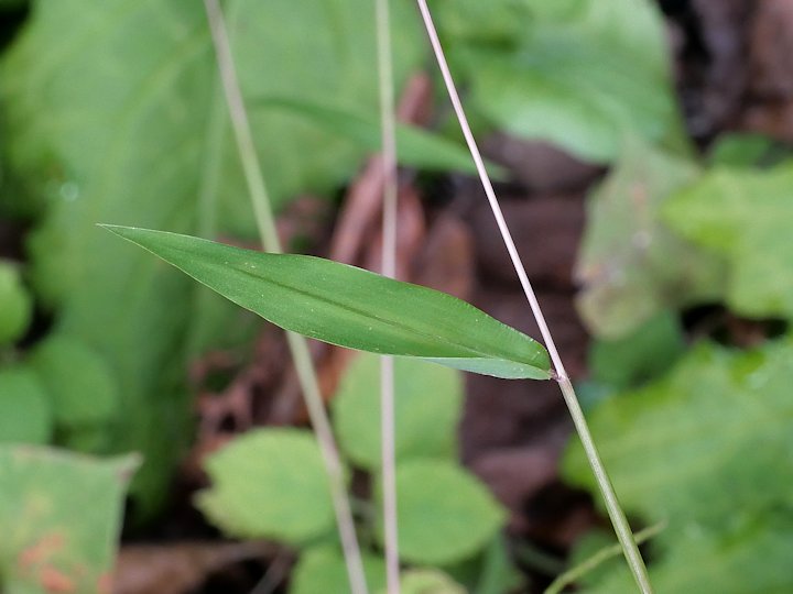 「アシボソ」は北海道から沖縄にかけて分布するイネ目イネ科アシボソ属の一年草です。湿った草地や林縁などに生育し,草丈は40cmから90cmになります。 茎の株は匍匐して節から根を出して広がり,上部は斜上します。葉は披針形で先は尖ります。花期は9月から10月で,茎頂に総状花序をつけ花序枝を1個から3個出します。