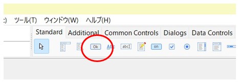 右の図のようになったら,次にフォームにボタンを貼り付けます。ボタンコンポーネントは,下の図の赤丸の部分にあります。