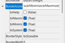 上の図の右側には,左から順に[最小化][最大化][閉じる]のボタンが並んでいます。これを変えるのは,プロパティの中の「BorderIcons」の項目です。