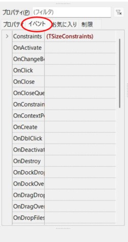 ここにも様々なイベントが表示されていますが,フォームでよく使うのが,[OnCreate][OnClose]です。
